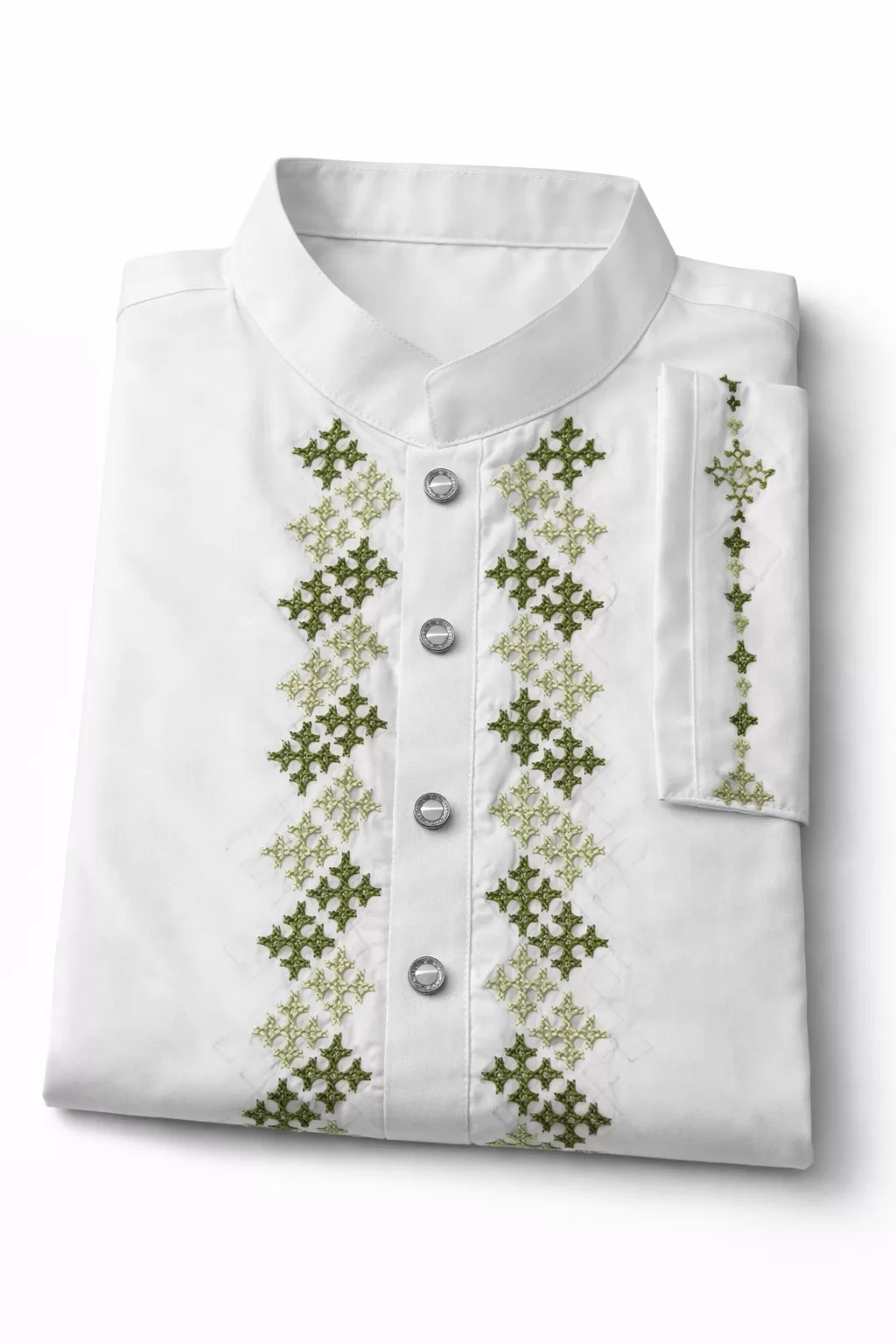 This Panjabi features exquisite handcrafted Gujarati stitching, created by skilled artisans with attention to detail. The refined embroidery and clean silhouette offer a timeless look that blends tradition with modern elegance. Ideal for festive occasions and elegant everyday wear.